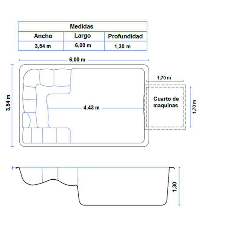 planos piscina en fibra