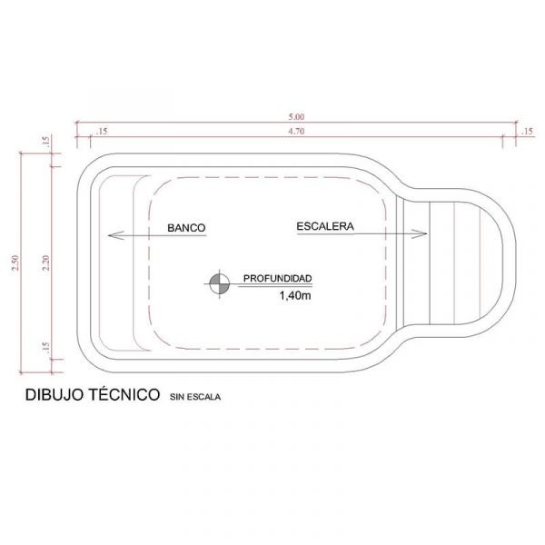 Excavación de terreno e instalación de piscina, acometidas eléctricas, hidráulicas y sanitarias no mayor a 5 metros.